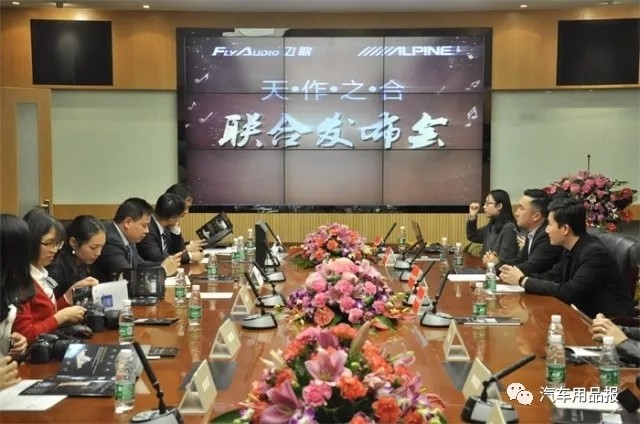 2017年12月28日下午3点整,广州飞歌汽车音响有限公司与阿尔派电子(中国)有限公司强强联手,双方达成合作意愿,共同举办联合签约会。阿尔派电子(中国)有限公司品牌事业部部长幸田刚、副部长吕明刚,阿尔派电子(中国)有限公司潘志滨,飞歌后装事业部总经理梁泽源、销售总监朱冠西,品牌经理赵之桔以及行业媒体嘉宾出席此次签约会。《汽车用品报》作现场报道。
