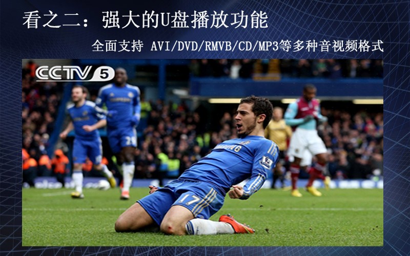 标准的USB扩展接口,支持USB/AUX功能,全面支持AVI/RMVB/MP3等多种主流音视频格式,支持音视频的硬件解码技术。在车内,随心所看。