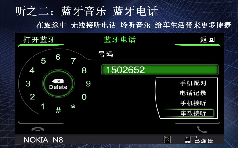 蓝牙播放器,不仅让您在旅途中,无线接听电话,还可以随心聆听手机音乐,给车旅生活带来多彩的乐趣和便捷。