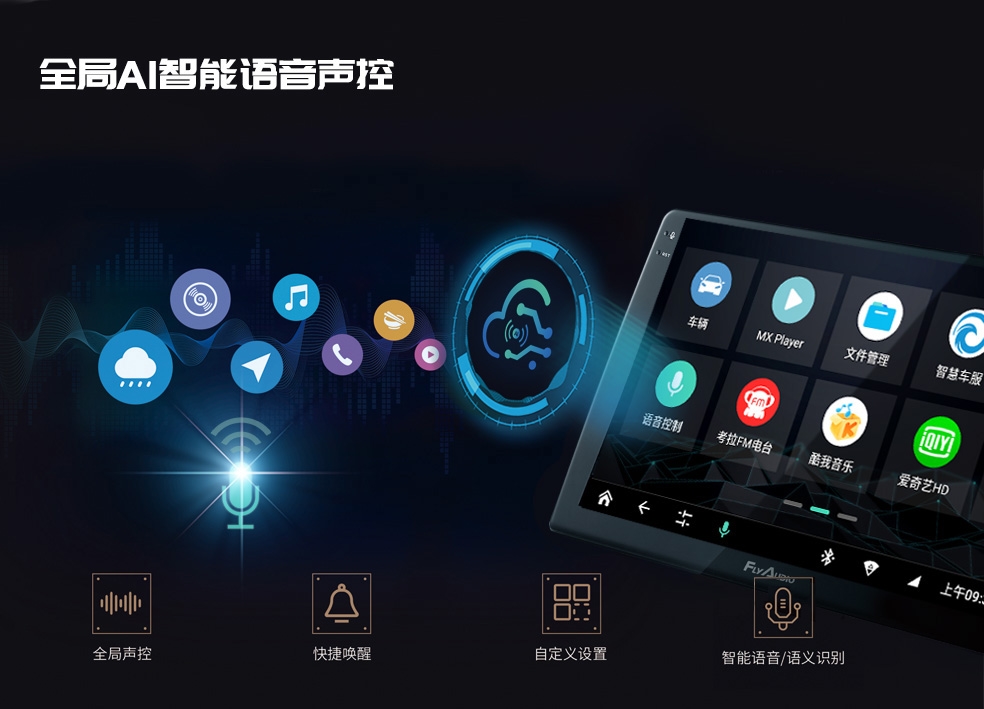 规避传统车机语音功能的弊端:支持部分语音声控、语义识别错误率高等,飞歌GS2智能车机实现全局AI智能语音声控,支持语音操作蓝牙、查询天气、系统控制、听音乐、导航等多场景。