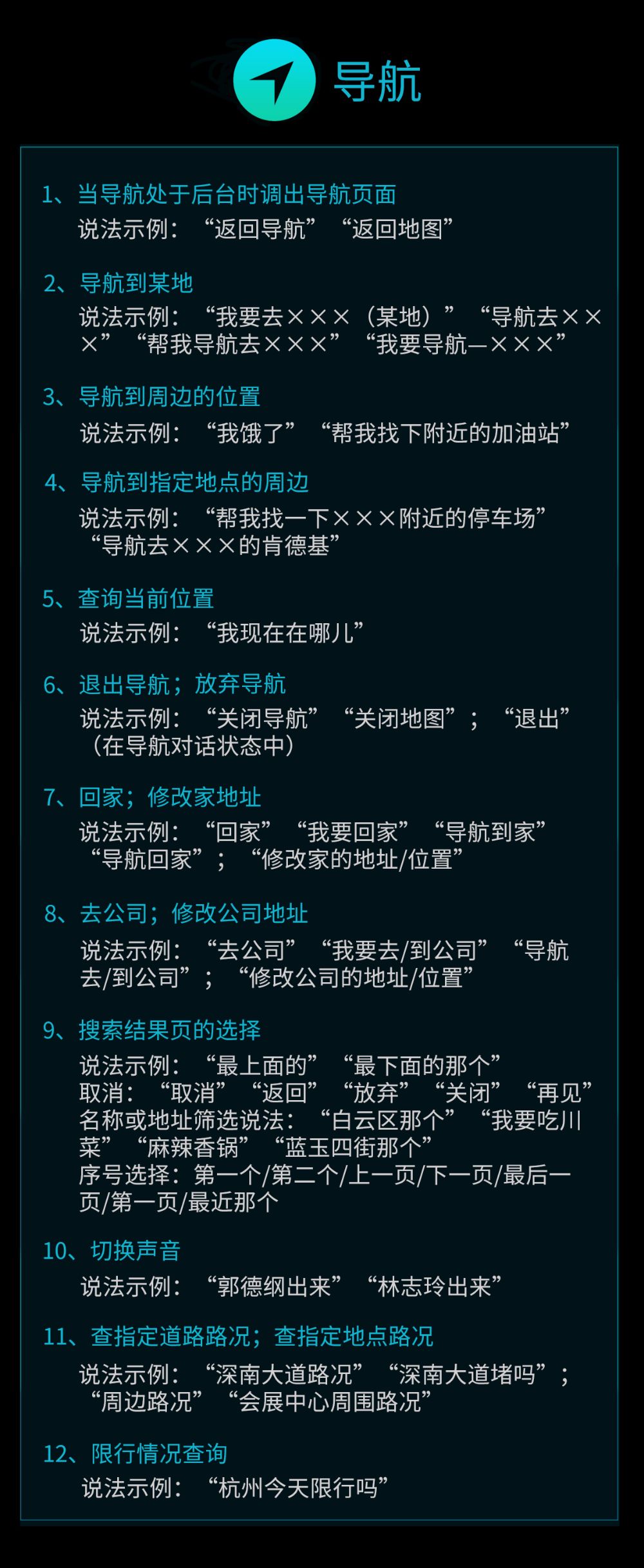 3.只有导航状态下免唤醒快捷指令。