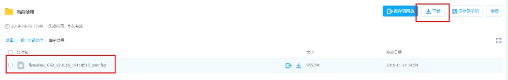 打开“当前使用”,选择升级包,点击“下载”。升级包下载完成后,将其直接拖曳至U盘根目录下(注:不能新建文件夹进行安置)。