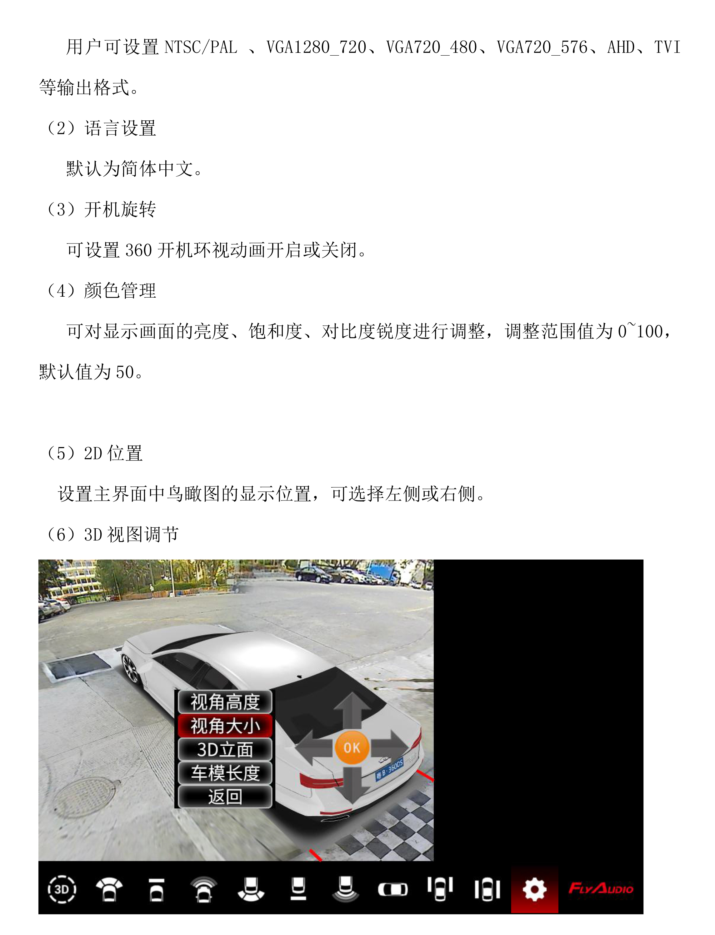 Flyaudio 360°全景行车辅助系统-3D4使用说明书