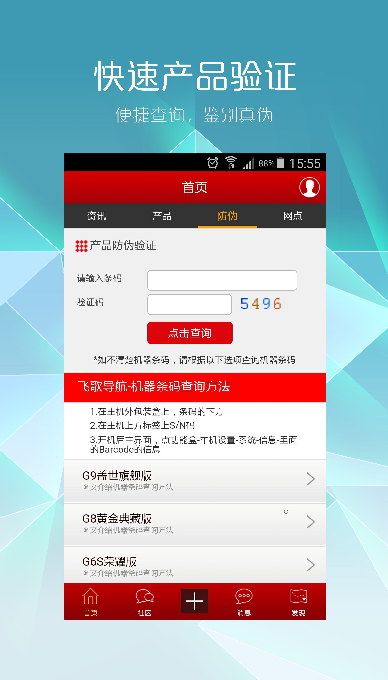 飞歌论坛APP将为所有飞歌客户提供行业新闻资讯、产品在线搜索和介绍、全国经销商实时查询以及在线防伪验证等实用讯息。